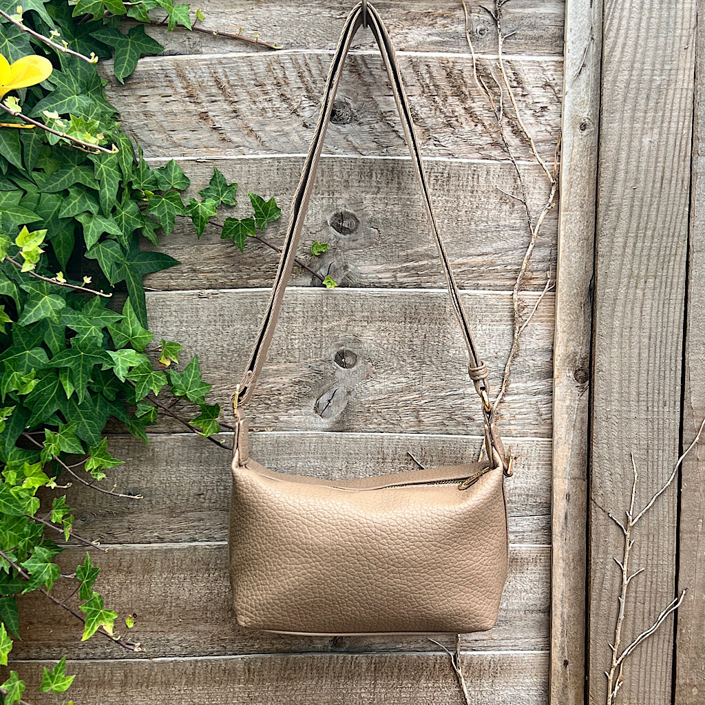 Taupe Pochette Zip Top Crossbody Bag (open)