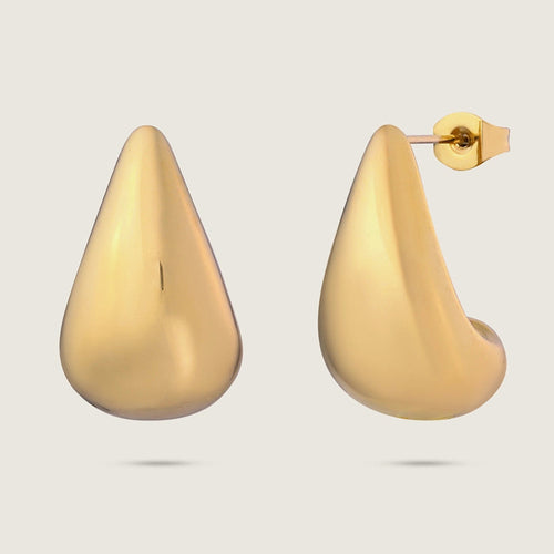 Chunky 18K Gold Plated Tear Drop Stainless Steel Earrings