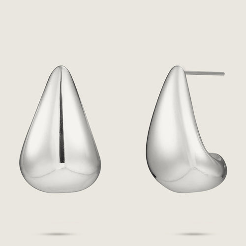 Chunky White Gold Plated Tear Drop Stainless Steel Earrings