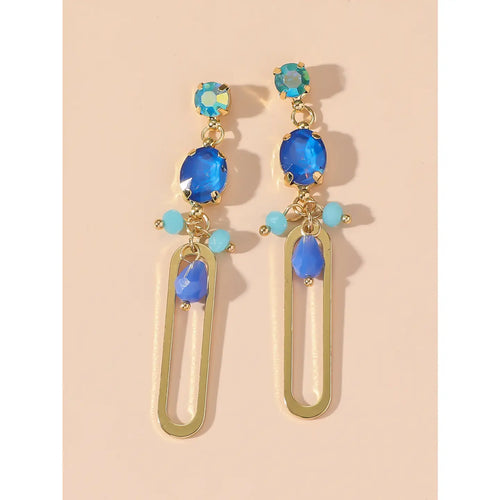 Multi-Coloured Square & Dangle Rhinestones Earrings
