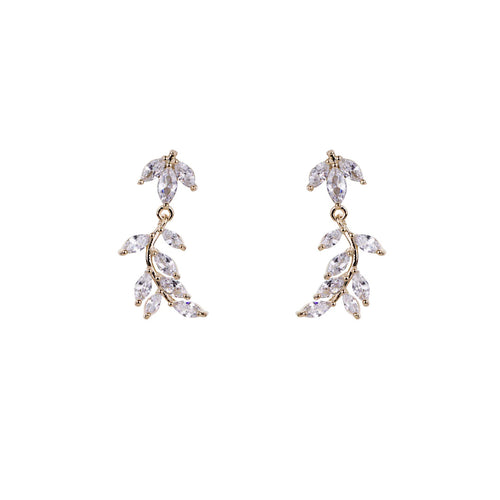 Gold & Cubic Zirconia Fern Dangle Earrings
