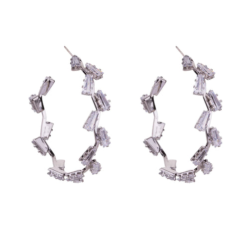 White Gold Plated & Cubic Zirconia Faceted Hoop Earrings
