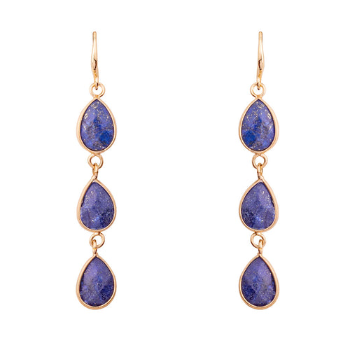 Gold & Lapis Venus Semi-Precious Stone Hook Earrings
