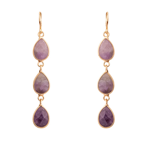 Gold & Amethyst Venus Semi-Precious Stone Hook Earrings