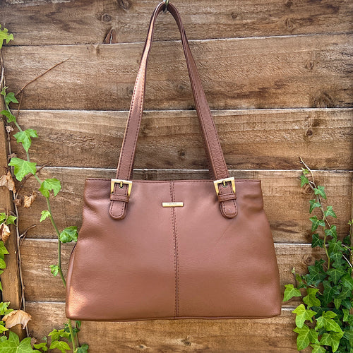 Chestnut Triple Zip Top Classic Leather Shoulder Bag