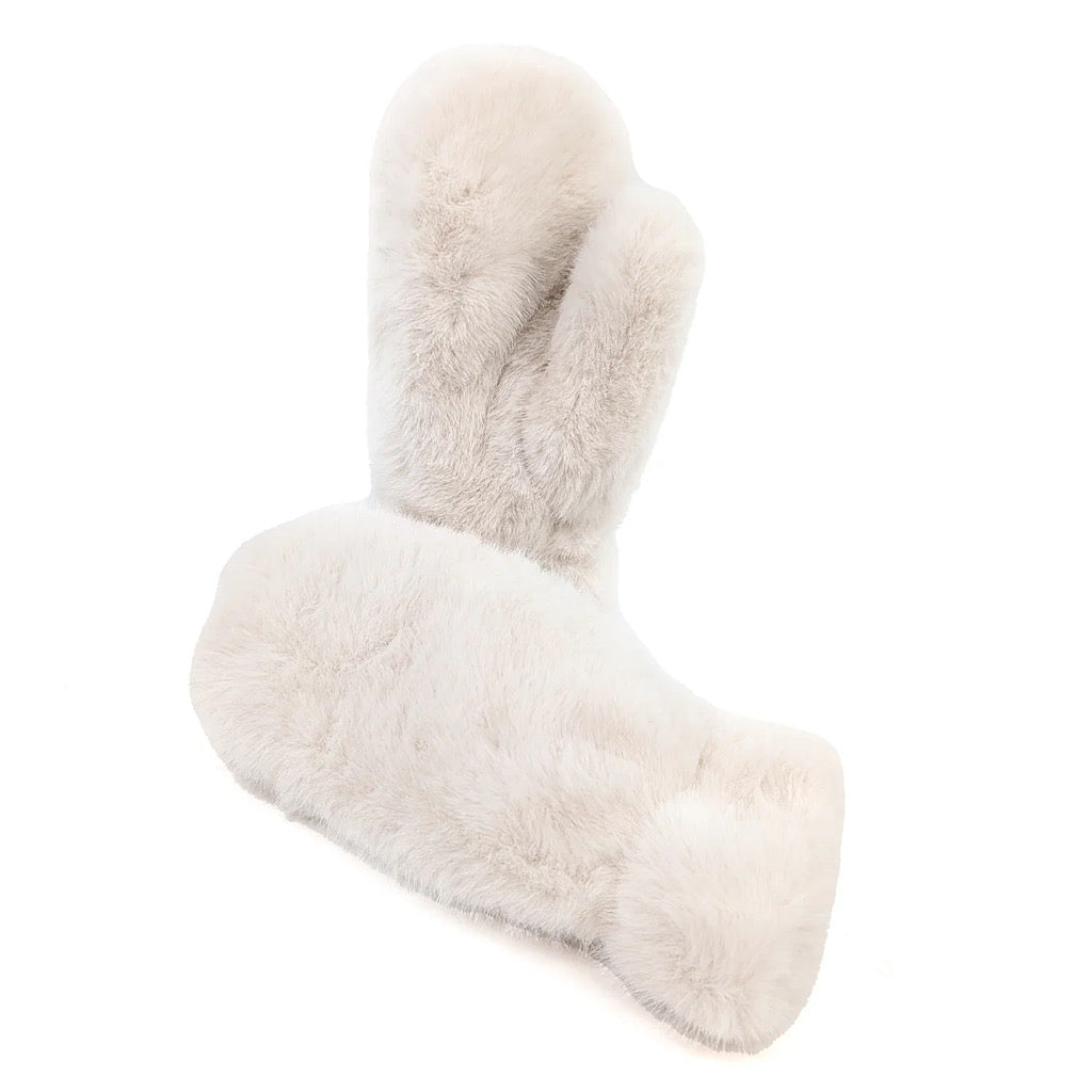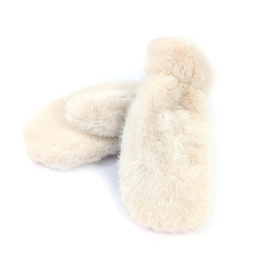 Cream Snow Cloud Faux Fur Mittens (flat)