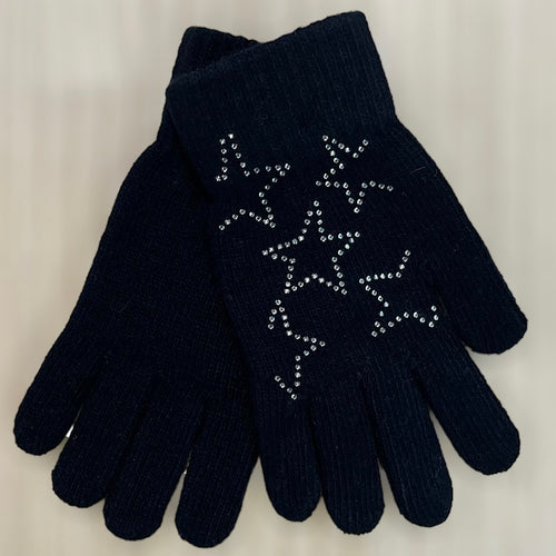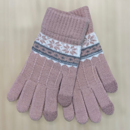 Pale Pink Ribbed Gloves with Rhinestone detail on cuff