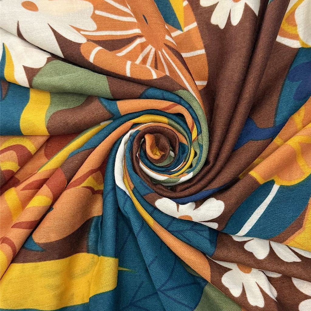 A soft, lightweight scarf in warm browns and earthy tones, finished with a bold floral print that works beautifully all year round. The fabric drapes well without feeling heavy, so it’s easy to wear wrapped, layered or thrown loosely over a coat.