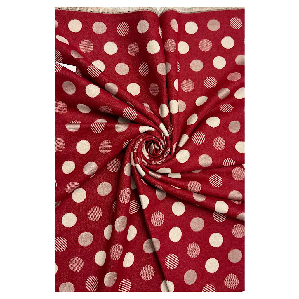 Turn heads with our Wine Polka Dot Reversible Wool Scarf — a statement piece that blends bold colour with effortless elegance. Crafted from a luxurious 30% wool, 70% acrylic blend, it offers the perfect balance of warmth, softness, and lightweight comfort. Measuring approximately 70cm x 180cm, this versatile scarf/wrap drapes beautifully over any outfit, adding a pop of colour and sophistication to your look.