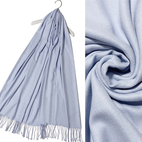 Super Soft Plain Pashmina Tassel Scarf | Light Blue