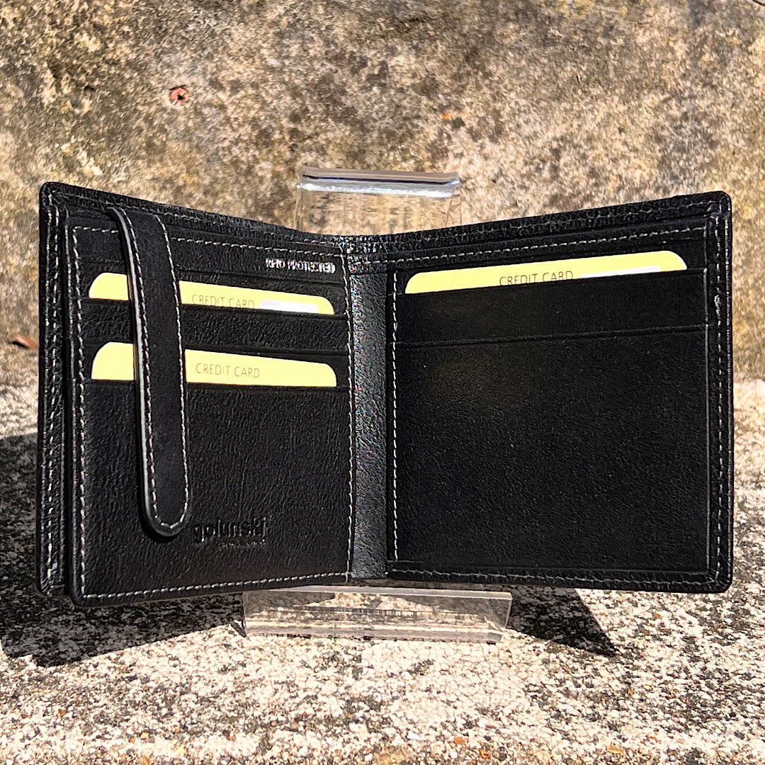 Gents Black Leather RFID Wallet By 'Oak' | 14 Card Slots