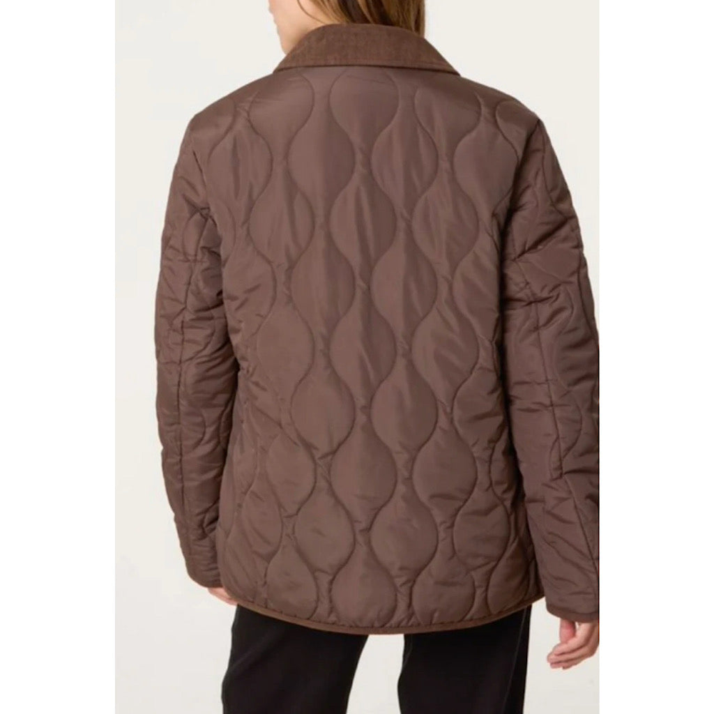 Available in sizes S, M, L, and XL, this coat is perfect for women who want a blend of practicality and timeless style. Ideal for countryside walks, casual outings, or layering over smart-casual looks, the Chocolate Pattern Quilted Cord Trim Coat is a must-have staple for your autumn and winter wardrobe.