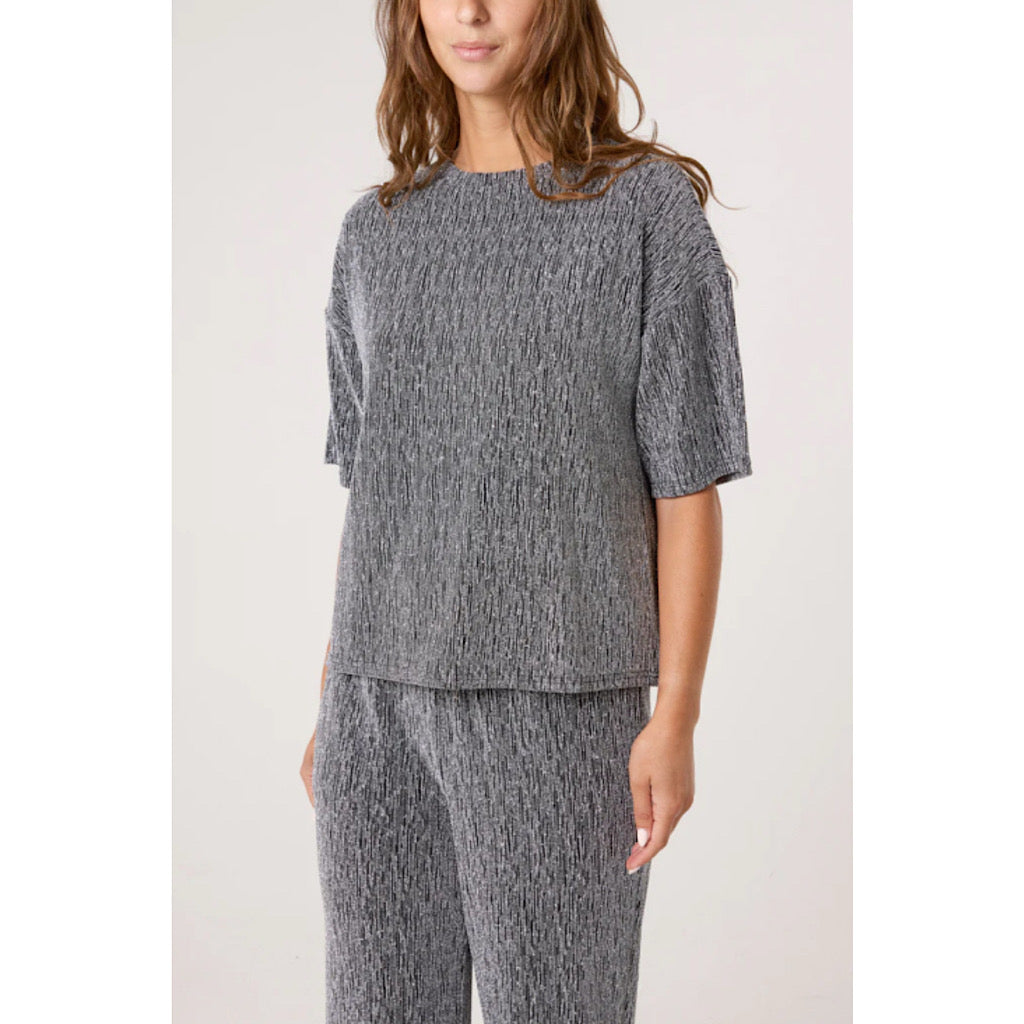 Shine with effortless glamour in our Silver Rhinestone Sparkle Top & Trouser Set – a dazzling co-ord that blends comfort with show-stopping style. This lightweight two-piece features an oversized short-sleeved t-shirt top and elasticated wide-leg trousers with side pockets, all finished with sparkling rhinestone embellishments for a head-turning look.