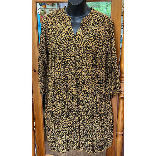 Ochre Leopard Print Tiered Shirt Dress