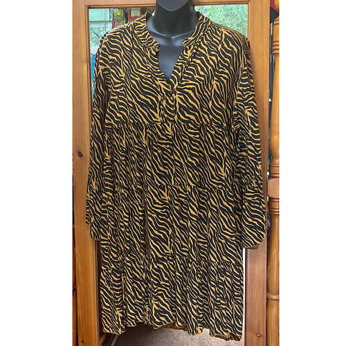 Ochre Zebra Print Tiered Shirt Dress