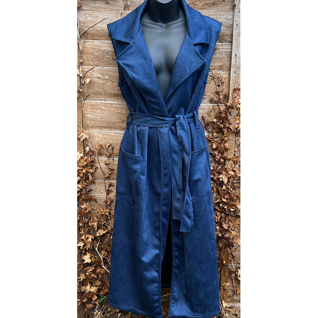 • Load image into Gallery viewer, Navy Sleeveless Longline Suedette Gilet