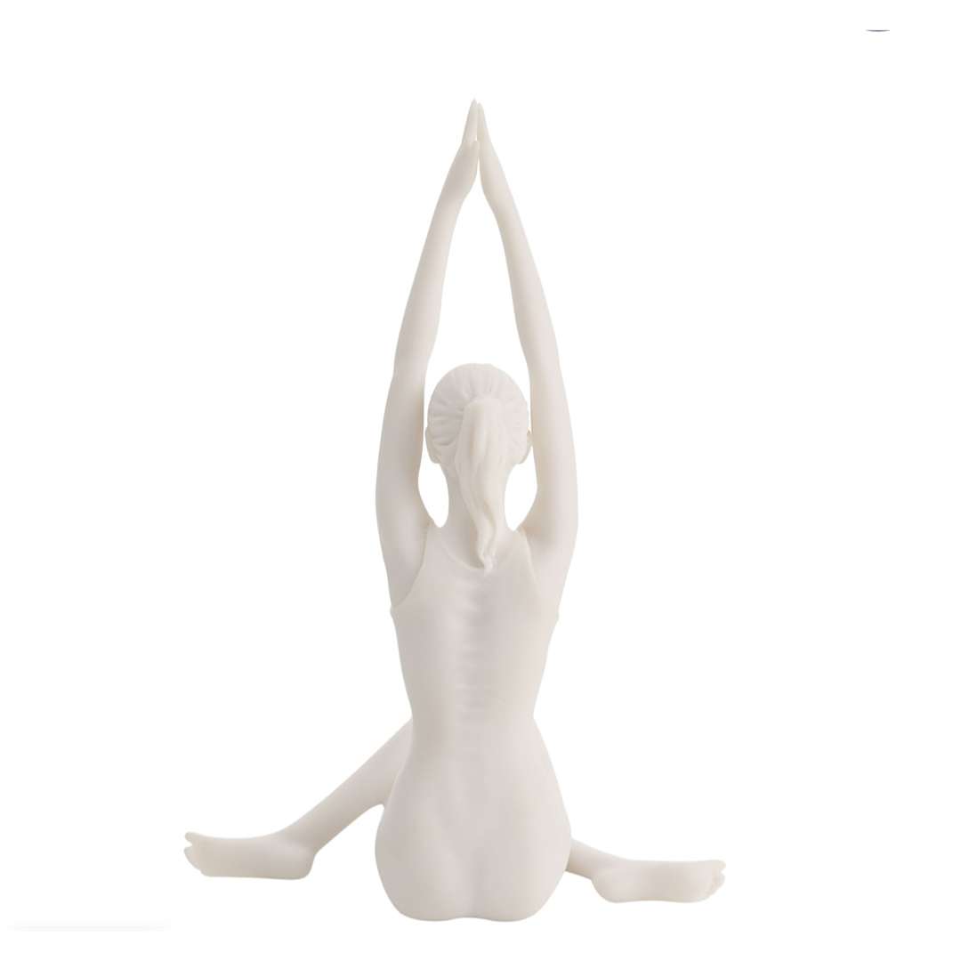 A beautifully made polyresin white portrait figurine, of a lady in the sun salutation yoga pose.